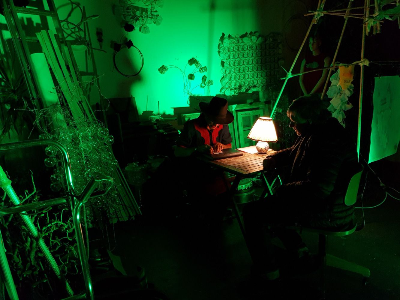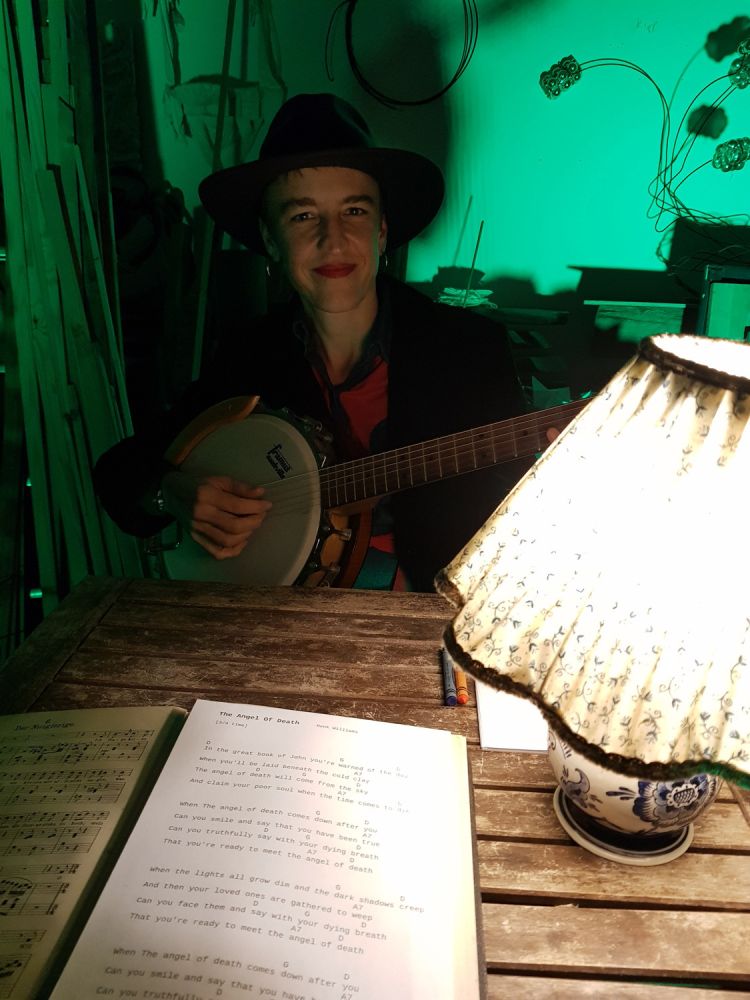 Im ersten Teil sang sie das Lied „ramblin man“ von Hank Williams auf dem Dach des Kunstkiosk´s. Der zweite Teil wurde 1zu1 (Künstlerin + 1Besucher) im Atelier abgehalten und die Ergebnisse der Aktion im neuen Schließschrank ausgestellt.